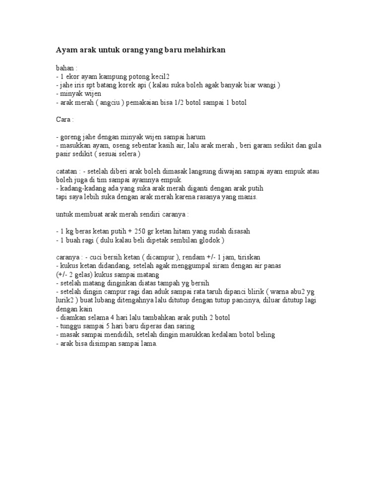 Resep Ayam Arak Masakan Mama Mudah from s.kaskus.id Lihat juga resep resep ayam arak jahe juara enak lainnya. Tapi kalau utk makan enak2 sekelurga 200ml cukup biasanya masak 1 ekor ayam kampung ini untuk si ibu yg melahirkan saja ya, bukan utk sekelurga. Arak boleh dimasak langsung diwajan sampai ayam empuk atau boleh juga di tim sampai ayamnya empuk. Berhubungan seksual setelah melahirkan mungkin merupakan hal terakhir yang anda pikirkan. Anda sebaiknya memilih ayam kampung untuk dijadikan masker. Berhubungan intim kembali setelah melahirkan harus dengan persetujuan kedua belah pihak. Jika anjing anda baru saja melahirkan tanpa gangguan, anda mungkin menghela nafas lega, karena anda pikir yang terburuk telah berlalu. Bayangkan harus mendorong bayi keluar dari lubang miss v yang mungil, tentu akan sangat berpengaruh pada bentuk vagina.